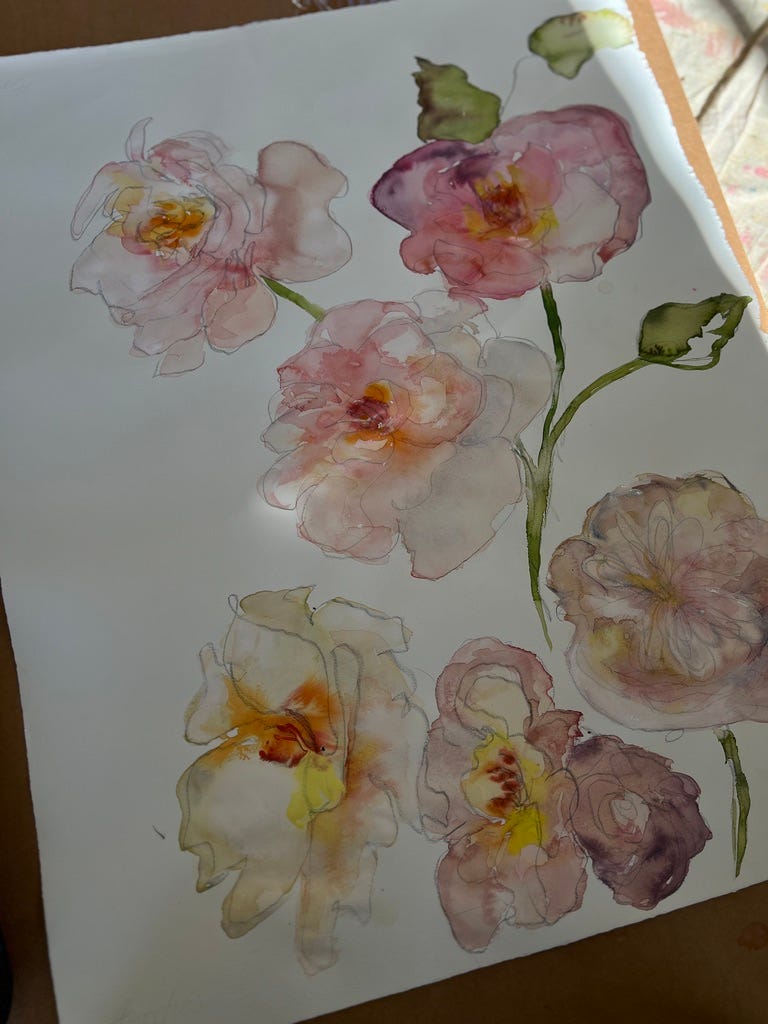 I am loving watercolor as a medium, since I can start and stop without much prep or clean up. This has been huge for my art practice. One of my favorite things about watercolor is that it looks completely different once dried than it did while wet. I love that.